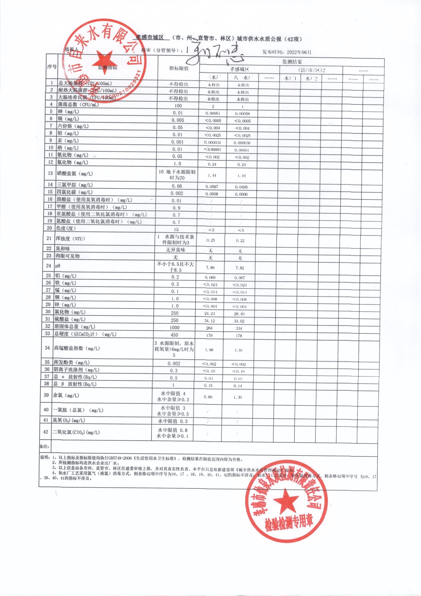 2022年6月水質(zhì)報(bào)告