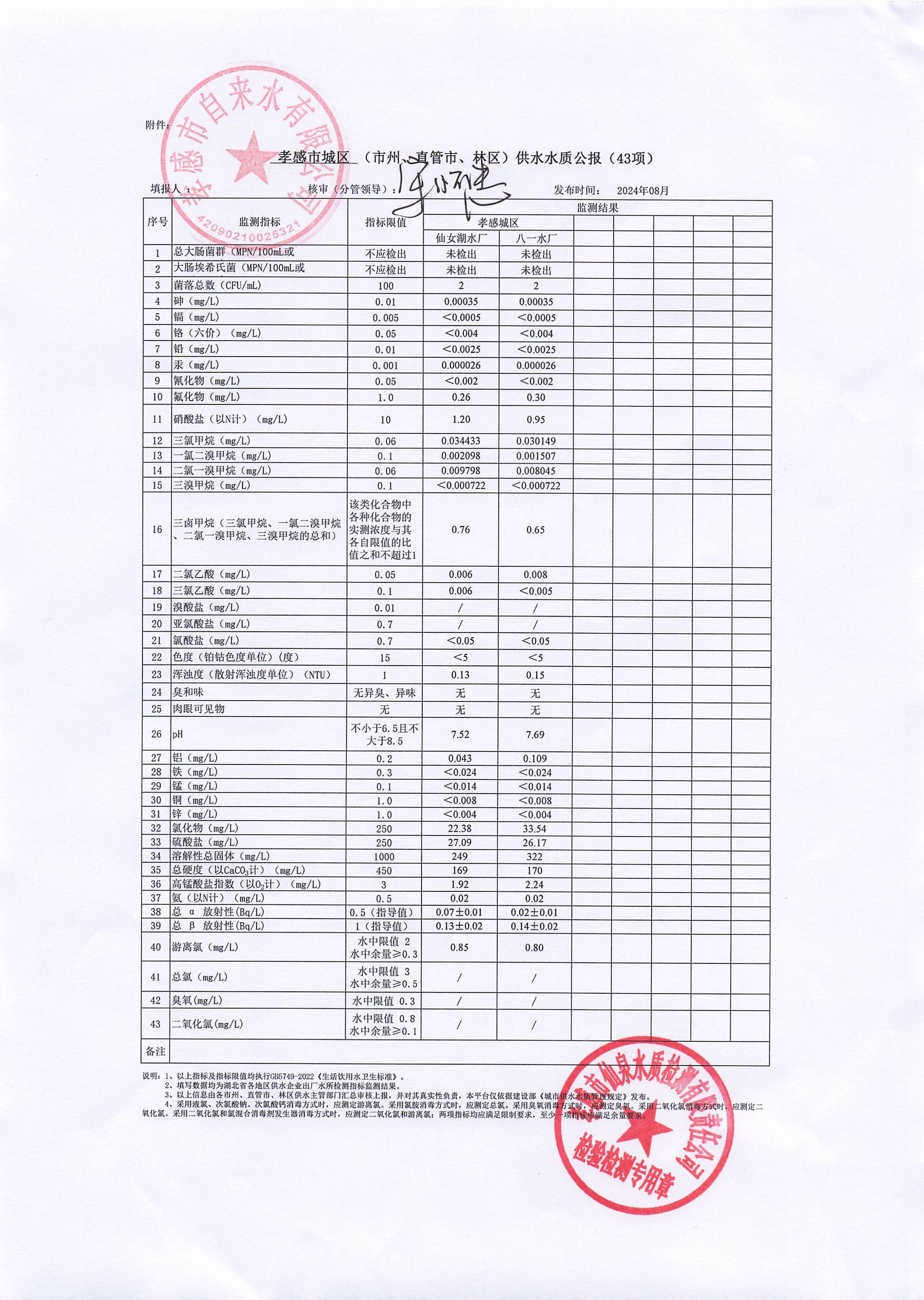 2024年8月水質報告