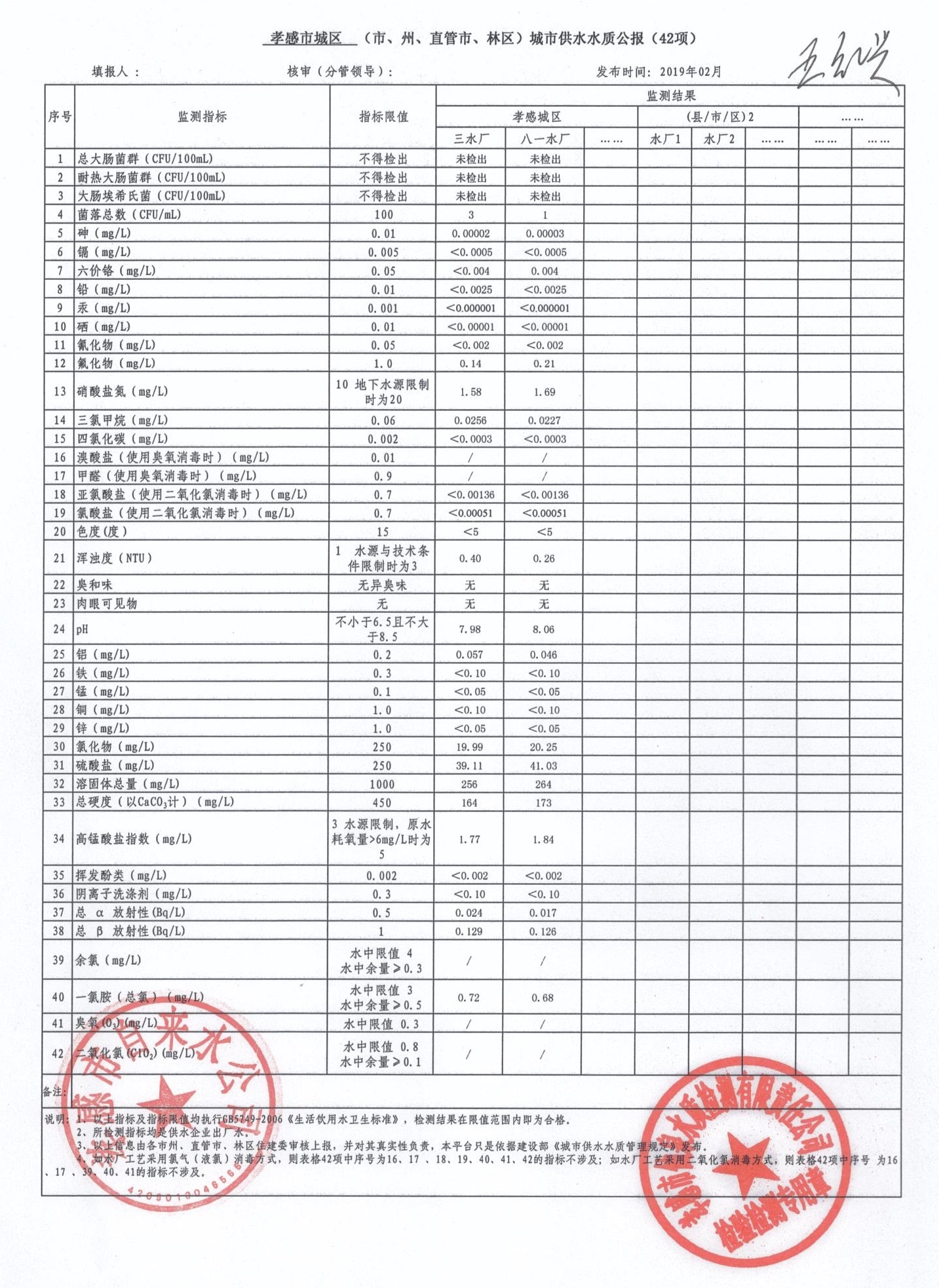 2019年2月水質(zhì)報(bào)告