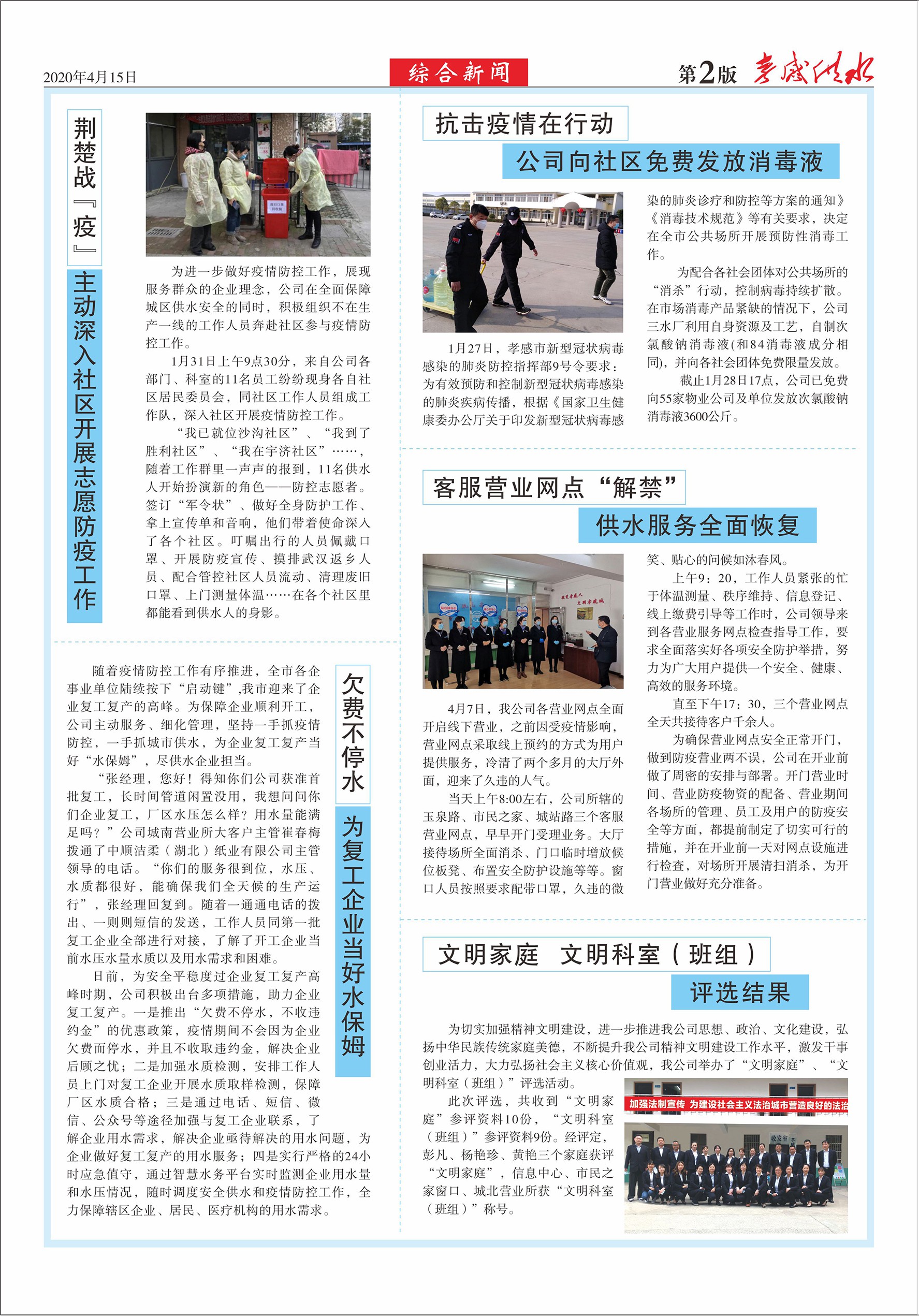 來源:孝感自來水 發布時間:2020/4/22 10:25:47